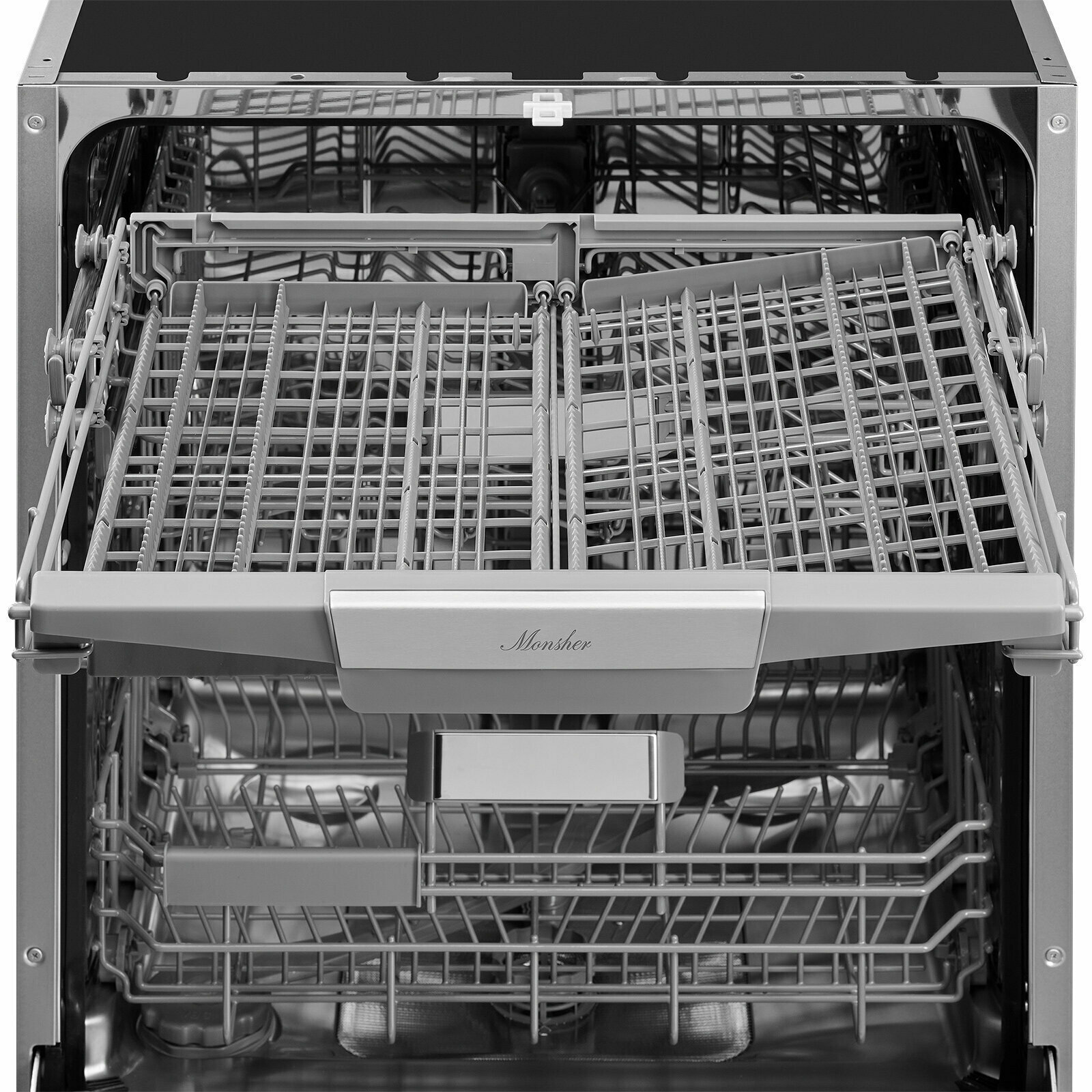 внутренняя поверхность из нержавеющей стали, использование средств 3 в 1, подсветка камеры, регулируемая по высоте корзина для посуды, таймер отсрочки