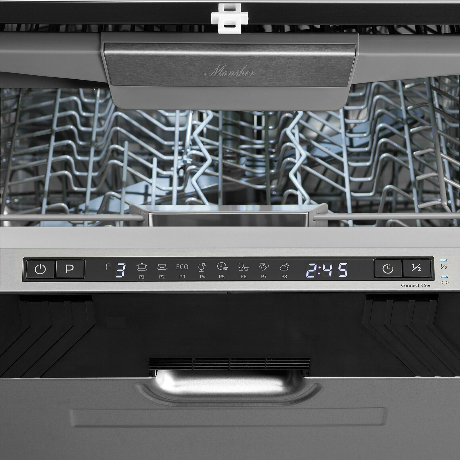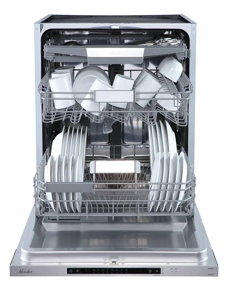КОМПЛЕКТАЦИЯ: Воронка для соли, Монтажный комплект, Шланг заливной/сливной, Длина сетевого шнура -140 см, Цвет LED-дисплея белый, Полка для чашек, Складные держатели тарелок, Съемные разбрызгиватели, Фильтр тонкой и грубой очистки Самодиагностика неисправностей, Допустимый вес фасада 5-7кг, Размер ниши для встраивания (ВхШхГ) 820х450х580 мм