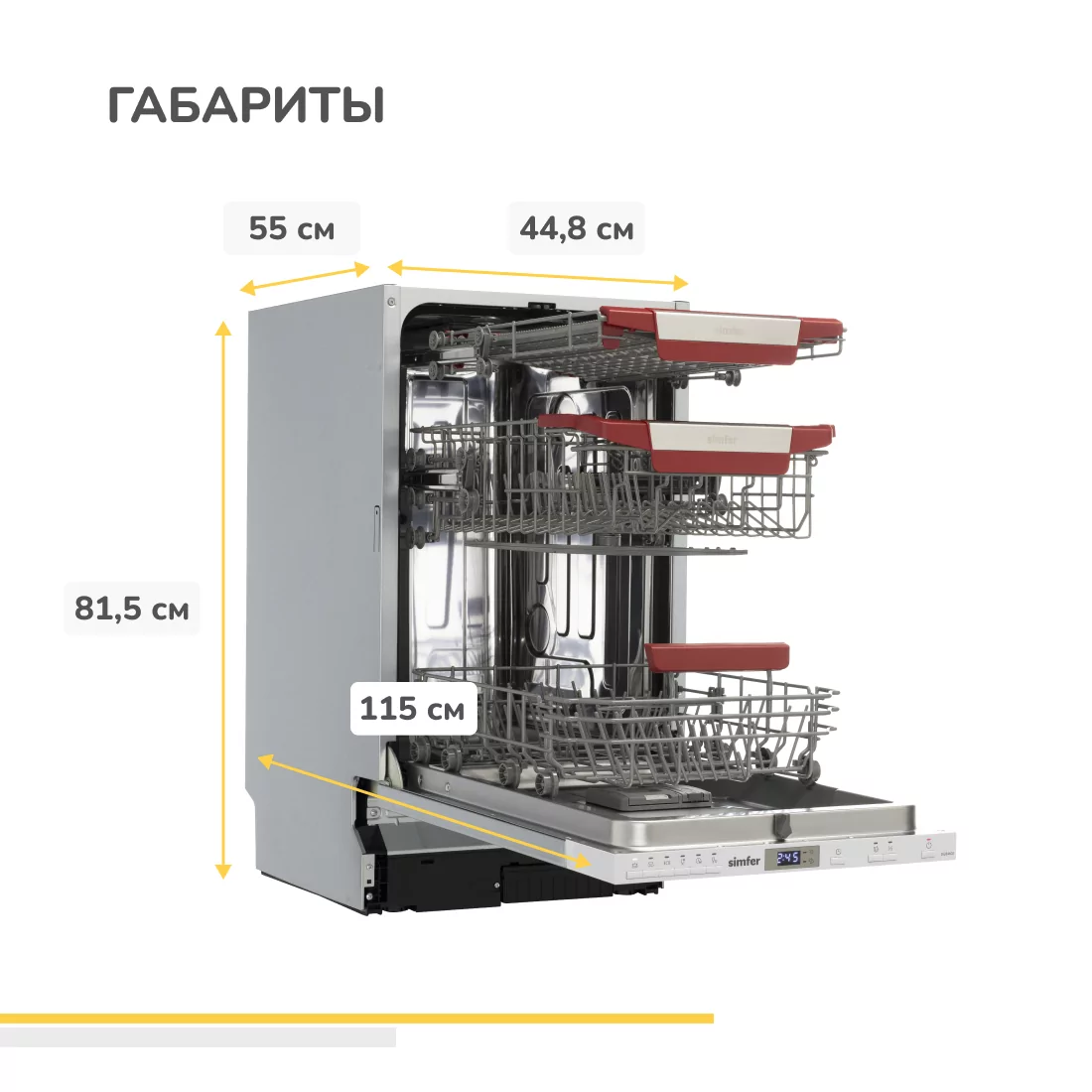 Комплектация Корзина для столовых приборов, полка для чашек и столовых ножей, стандартный впускной шланг, стандартный сливной шланг, винты 2 шт, зажимная лента, инструкция и гарантийный талон
