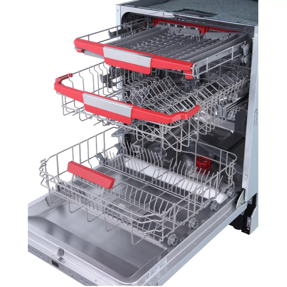Комплектация Корзина для столовых приборов, полка для чашек и столовых ножей, стандартный впускной шланг, стандартный сливной шланг, винты 2 шт, зажимная лента, инструкция и гарантийный талон