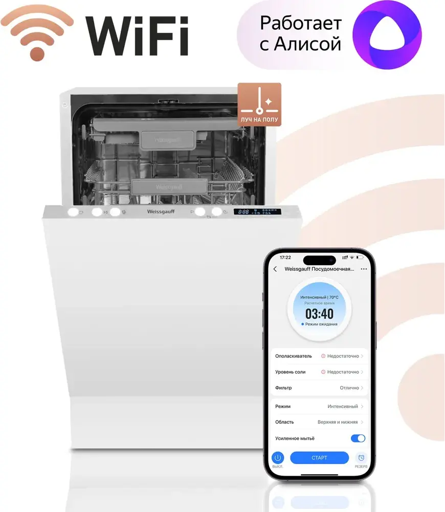 Программы мойки: Экономичная, Деликатная/стекло, 90 минут, Быстрая, Автоматическая, Интенсивная, Стандартная