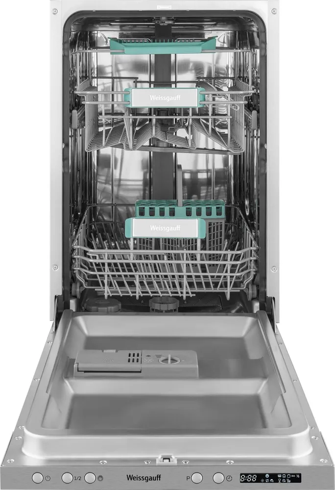 Функционал посудомоечной машины: Использование средств 3-в-1, Возможность добавления посуды после запуска, Половинная загрузка, Таймер, Отсрочка запуска, Звуковой сигнал