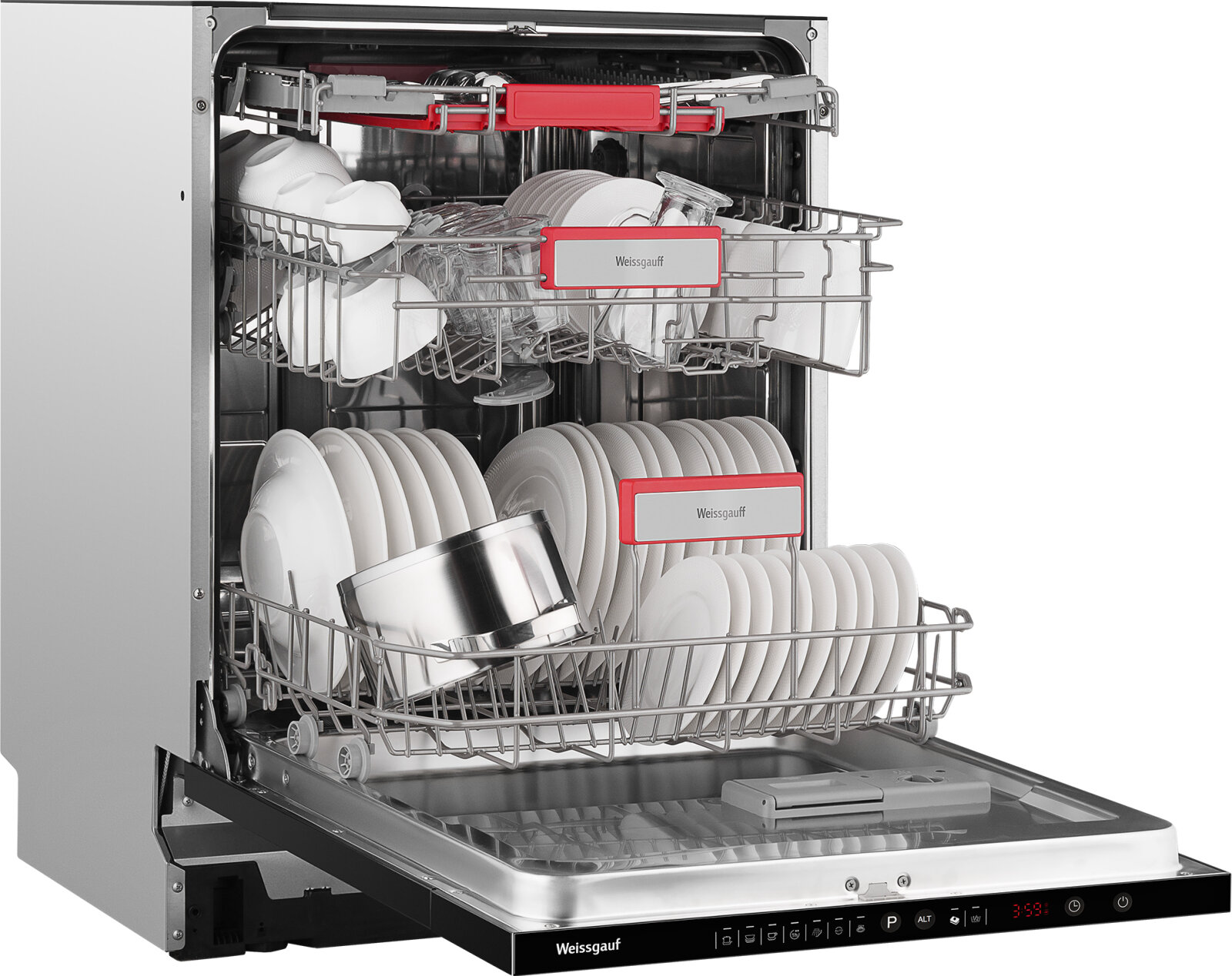 Weissgauff представляет вашему вниманию новую модель встраиваемой посудомоечной машины шириной 60 см, оснащенную 3 корзинами, функцией "Луч на полу" и обладающую вместимостью до 14 комплектов посуды, а также богатым набором из 6 программ, в том числе и автоматической программой Blitz Wash.