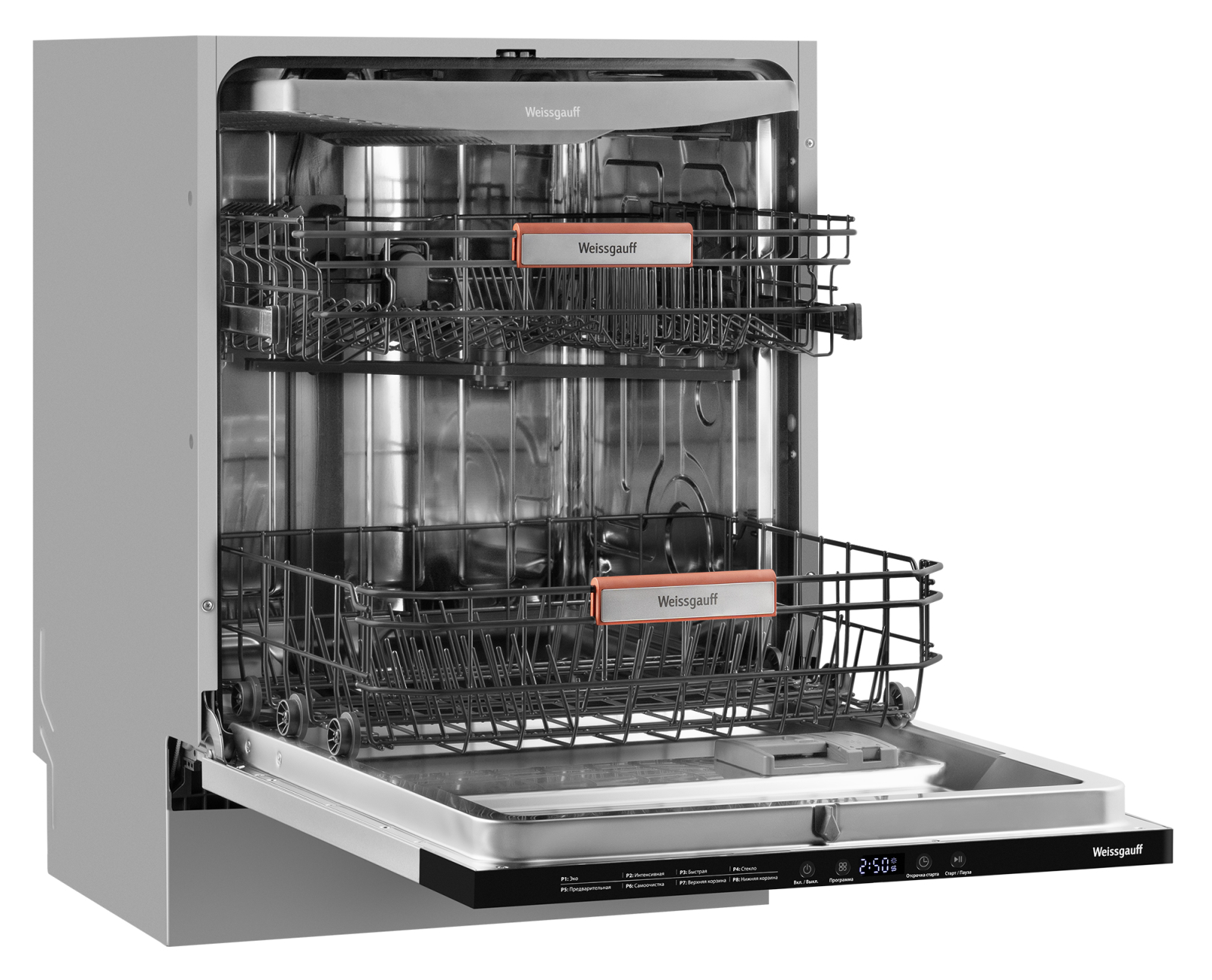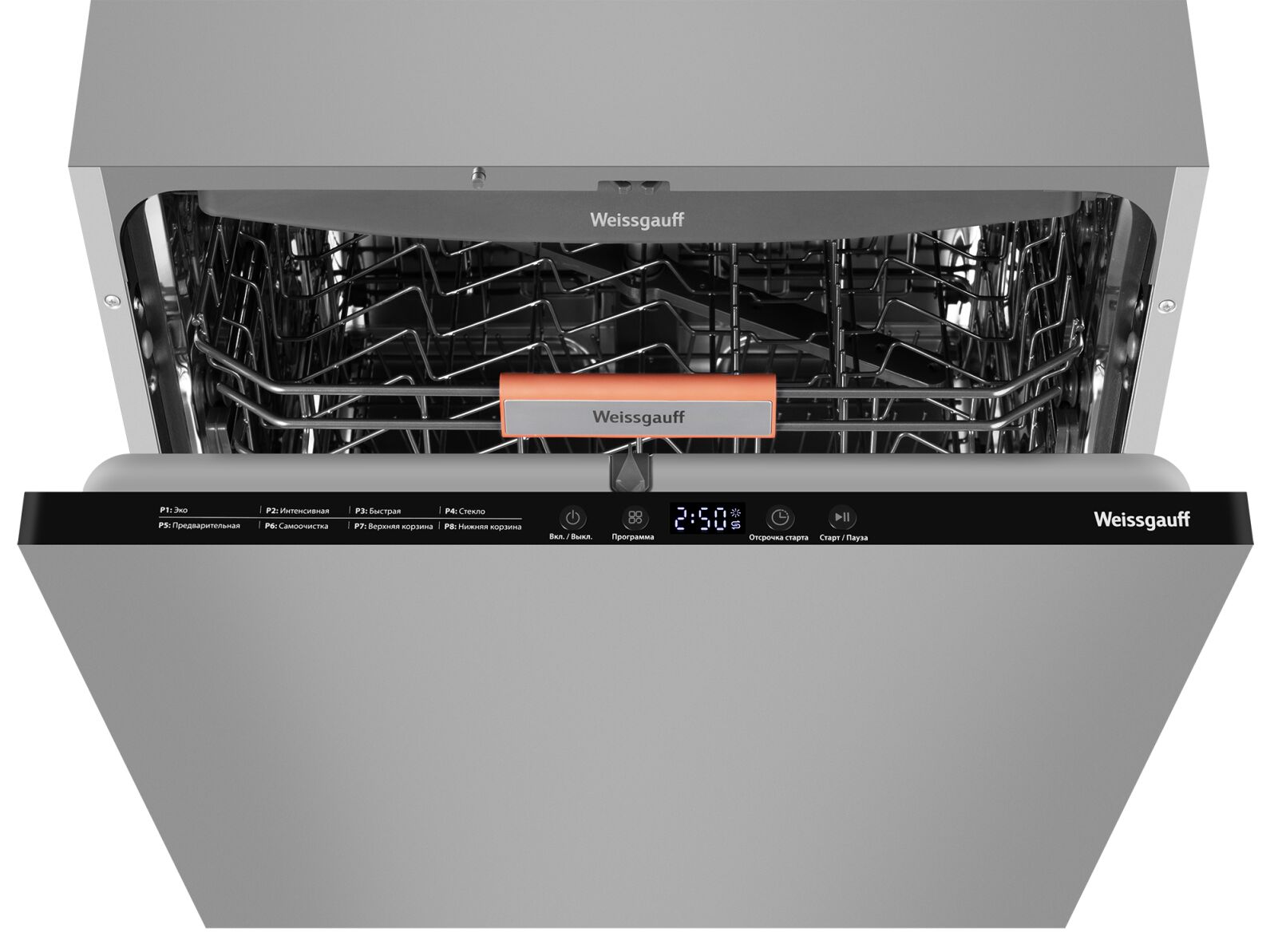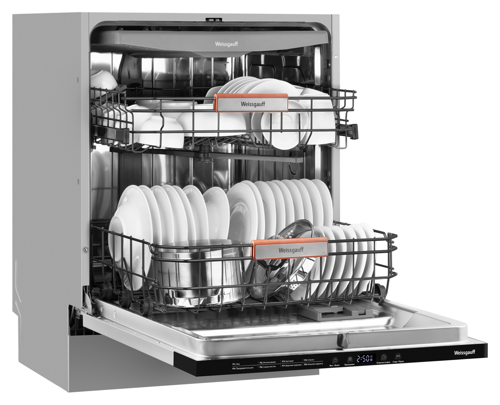 Программы : Эко, Интенсивная, Быстрая, Стекло, Предварительная, Самоочистка, Верхняя корзина, Нижняя корзина