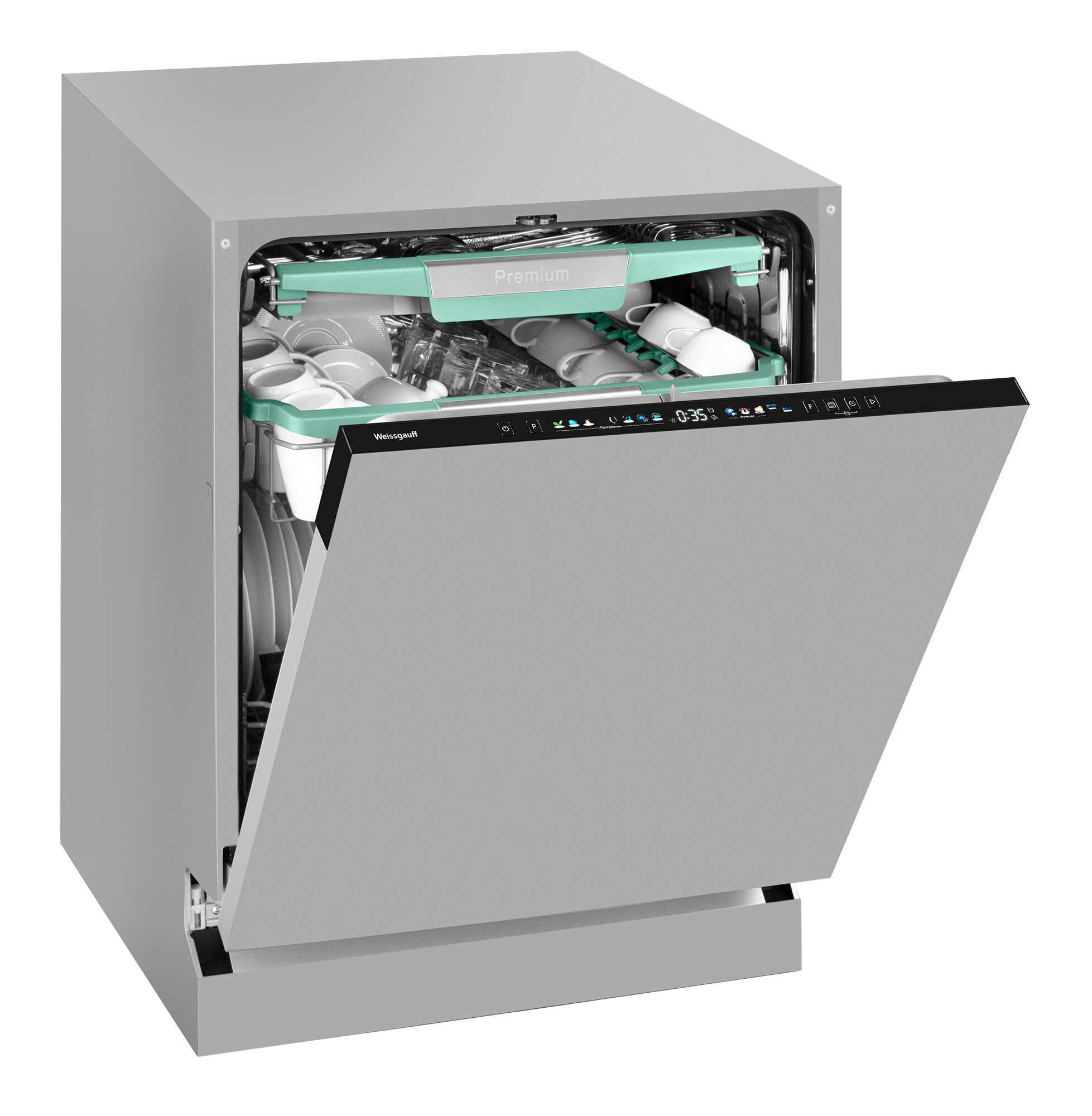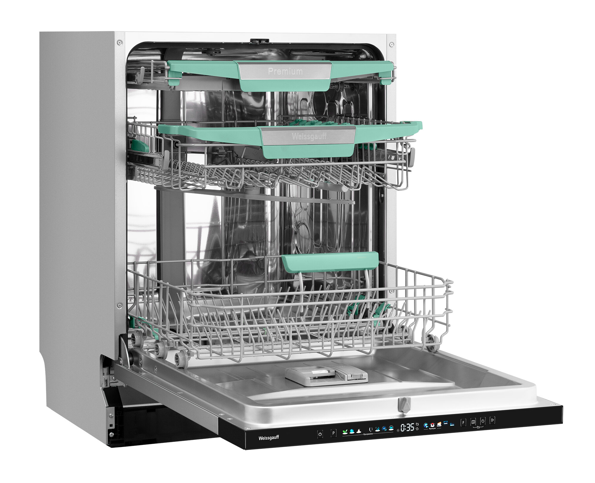 автоматическое открывание дверцы по завершении цикла, дисплей, регулируемая по высоте корзина для посуды, таймер отсрочки