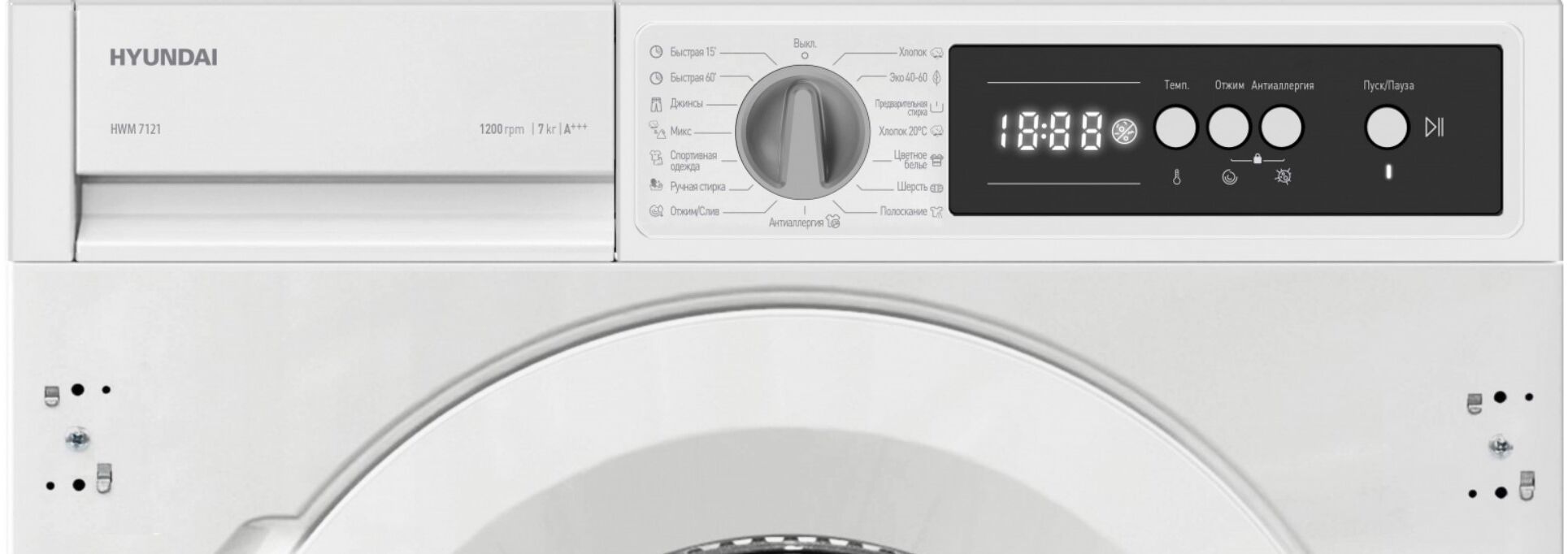 Программы Хлопок, Эко 40-60, Предварительная стирка, Хлопок 20°C, Цветное белье, Шерсть, Полоскание, Антиаллергия, Отжим/Слив, Ручная стирка, Спортивная одежда, Микс, Джинсы, Быстрая 60’, Быстрая 15’