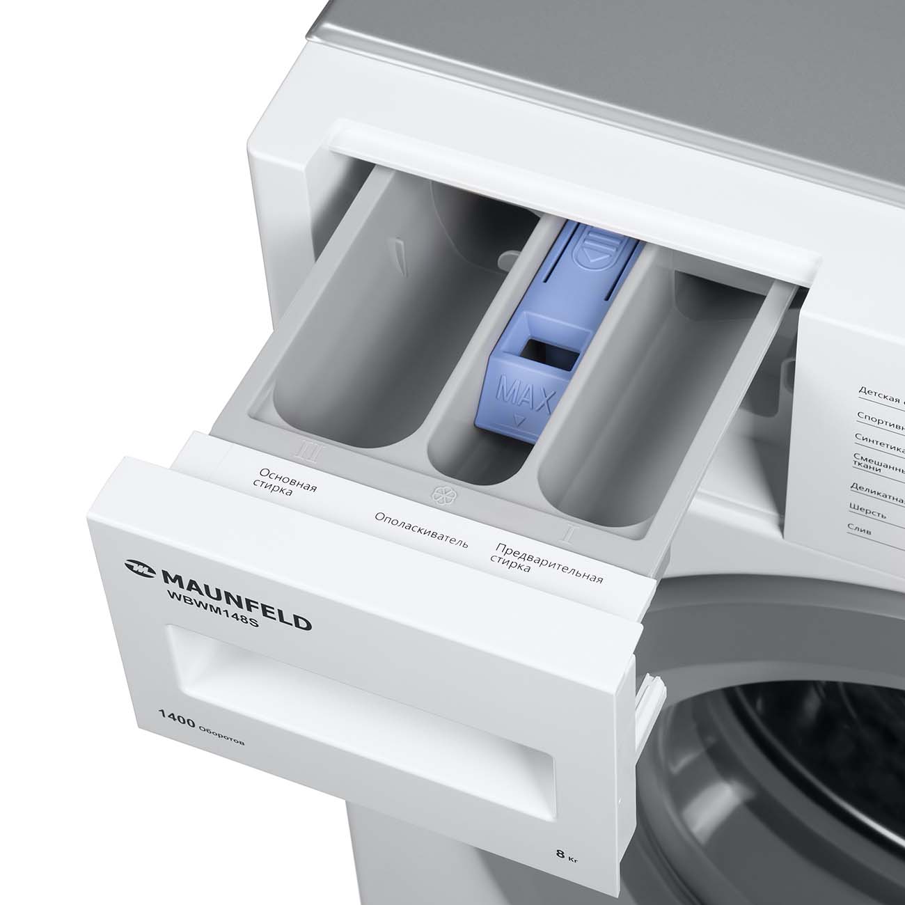 Встраиваемая стиральная машина MAUNFELD MBWM148S − удобная и функциональная модель, с которой стирка вещей станет еще эффективнее и качественнее. Она поддерживает 16 программ, среди которых, как стандартные программы − «Синтетика», «Слив», «Отжим», «Полоскание и отжим», «Экспресс 15”», «Хлопок 60/40/20 градусов», «Хлопок интенсивная», так и специальные − «Смешанные ткани», «Шерсть, «Деликатные ткани, «Ручная стирка», «Детские вещи», «Спортивная одежда». Помимо этого, пользователь может воспользоваться индивидуальной настройкой в программе «Мой режим».