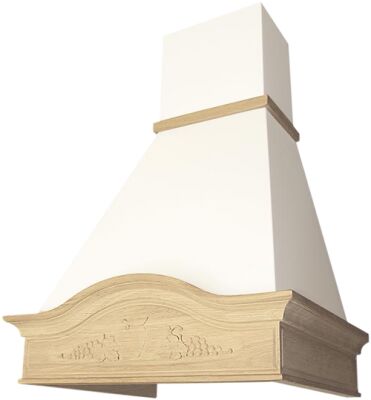 Идеальный вариант для классической кухни из дерева. Резное обрамление вытяжки Вилла Фрукты сделает вытяжку уникальной, не нарушая при этом общего дизайна кухни. Вытяжка Вилла Фрукты с изящным резным обрамлением, несомненно, станет изюминкой Вашей кухни, а мощная итальянская турбина 650 м3/час отлично справиться с очисткой воздуха, работая при этом практически бесшумно. Уровень шума составляет всего 56 дБ, что напоминает уровень громкости разговора на спокойных тонах.