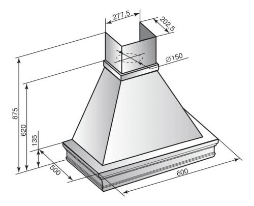 | Тип и монтаж | традиционная (пристенная) | | Оформление | кантри |  |  | | Технические параметры | | Принцип работы | отвод / рециркуляция | | Мощность | 225 Вт | | Производительность (мотор) | 650 м³/ч | | Минимальный уровень шума | 36 дБ | | Максимальный уровень шума | 56 дБ | | Количество скоростей | 3 | | Количество двигателей | 1 |