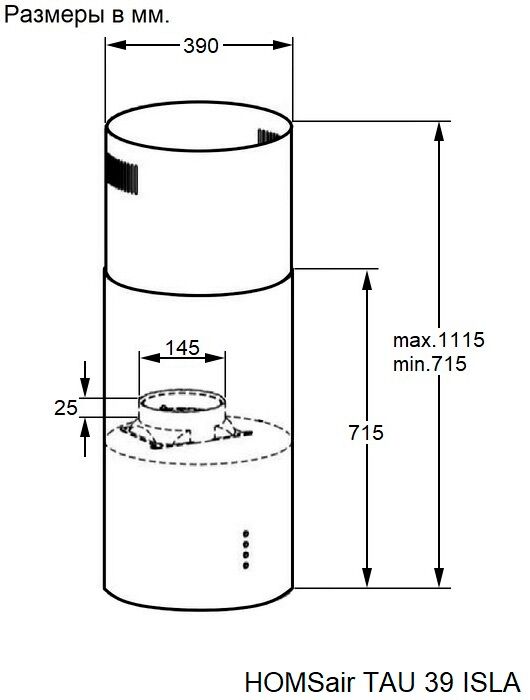Вытяжка HOMSair TAU 39 ISLA нерж
