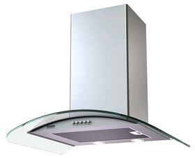 Особенности Крупная шлифовка нержавеющей стали для защиты от отпечатков пальцев; Производительность модели рассчитана на площадь кухни до 10 кв.м.; Прочное декоративное стекло изогнутой формы; Тихая работа вытяжки.