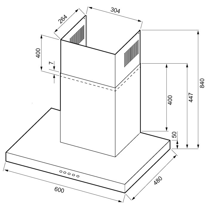 | | Фильтрация | | Жироулавливающий фильтр | металлический | | Возможность установки активного фильтра |  |  |  | | Функции и возможности | | Освещение | светодиодные лампы | | Управление | кнопочные переключатели |  |  | | Общее | | Высота (макс.) | 84 см | | Ширина | 60 см | | Глубина | 48 см |