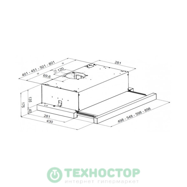 | Тип и монтаж | встраиваемая (в шкаф) | | Оформление | с выдвижной панелью |  |  | | Технические параметры | | Принцип работы | отвод / рециркуляция | | Мощность | 100 Вт | | Производительность (мотор) | 450 м³/ч | | Количество скоростей | 2 | | Количество двигателей | 1 |