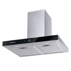 Сенсорная панель управления с дисплеем находится на фасаде, выполненном из закаленного стекла черного цвета. Можно выбрать один из 3-х скоростных режимов работы, установить таймер для выключения вытяжки и активировать светодиодную подсветку (2 светильника по 1,5 Вт).