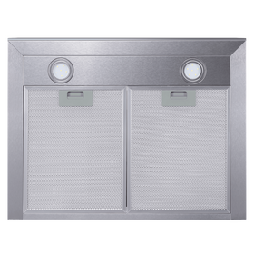 Вытяжка выполнена полностью из матированной нержавеющей стали. На рабочей поверхности расположено 2 многослойных жироулавливающих алюминиевых фильтра, которые легко вынимаются и полностью разбираются, что сильно упрощает чистку.