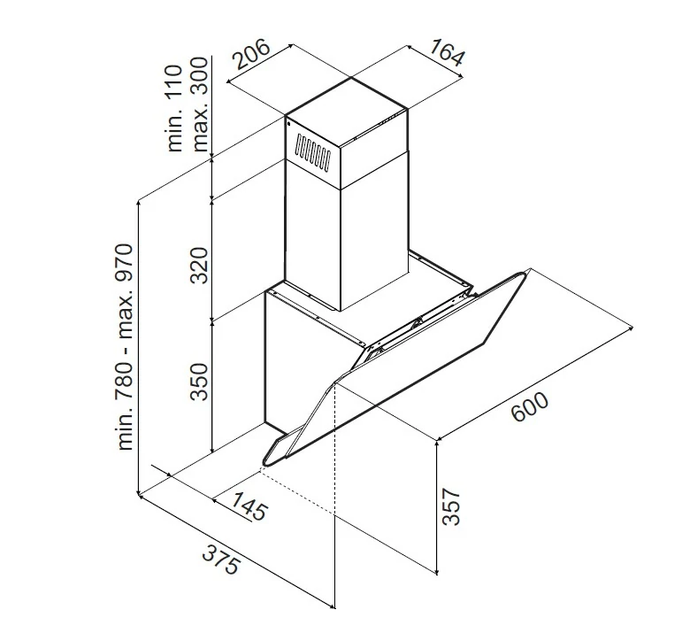 Особенность: съемное фасадное стекло, возможность замены на стекло с другим цветом, периметрическое всасывание
