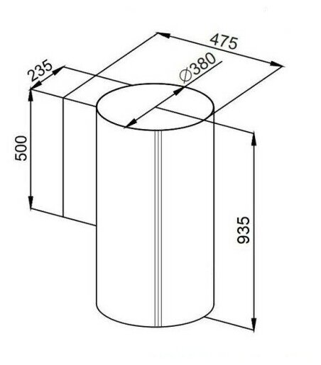 Корпус цилиндрической формы, выполненный из нержавеющей стали с термостойким покрытием, крепится к стене над поверхностью плиты. В нижней части вытяжки находится алюминиевый многослойный жироулавливающий фильтр. Он легко вынимается и полностью разбирается, что сильно упрощает чистку.