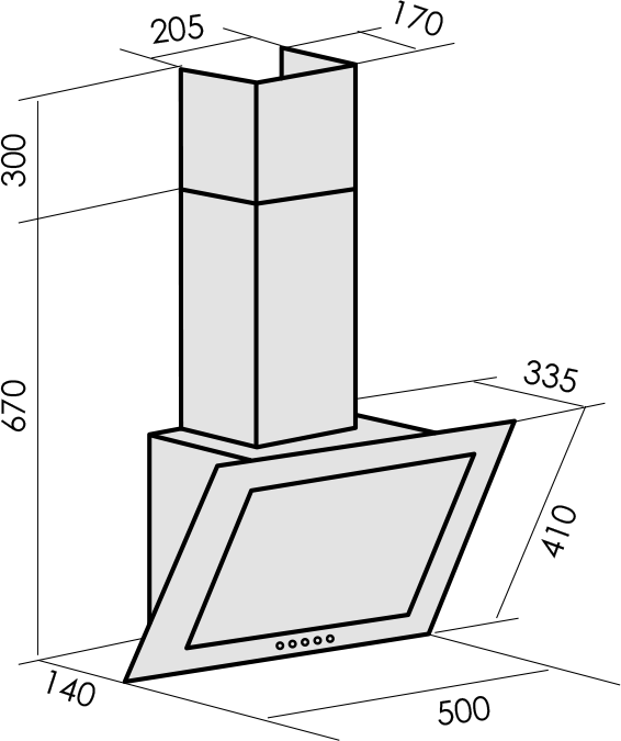 подсветка: светодиодные лампы 2х3 Вт; мощность каждой лампы: 3 Вт; ширина, высота, глубина упаковки: 545 мм, 450 мм, 405 мм; объем, м³: 0.1; вес брутто: 10.3 кг; тип установки вытяжки: каминная; максимальное давление, Па: 300; тип фильтра F-022