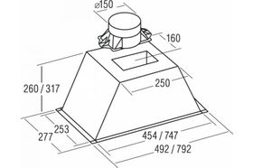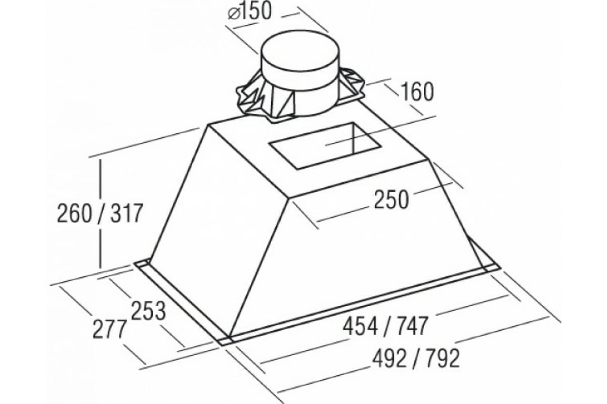 прямой забор воздуха; Quick & Click - система легкой установки; алюминиевые фильтры с возможностью очистки в посудомоечной машине; уровень шума 41 Дб; максимальное давление 470 Па; освещение 2х3,5 Вт светодиодное; угольный фильтр TCF-005 (приобретается отдельно)