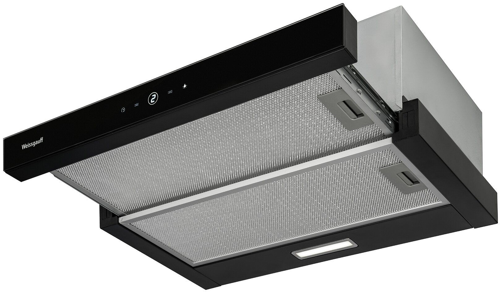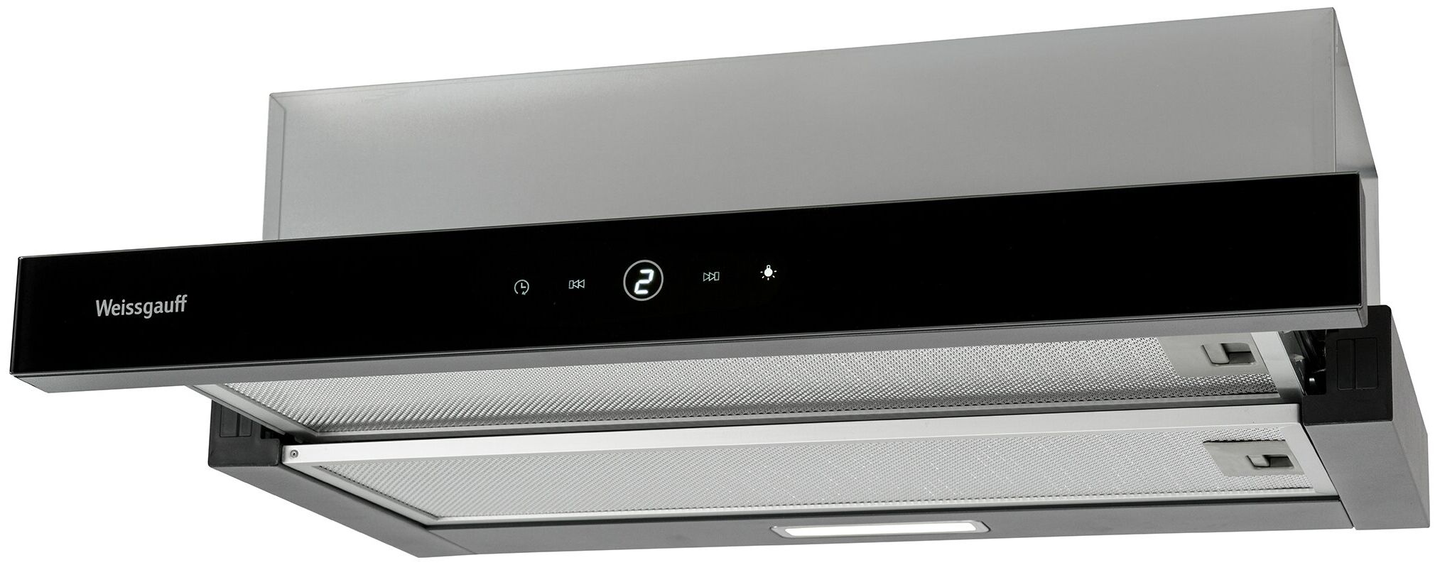 работа вытяжки как в сложенном, так и в раскрытом состоянии; для помещений площадью до 27 м2; время отключения 9 минут; 2 алюминиевых жировых фильтра; возможность установки угольного фильтра Universal (в комплект не входит); количество ламп освещения: 1; мощность каждой лампы: 2 Вт