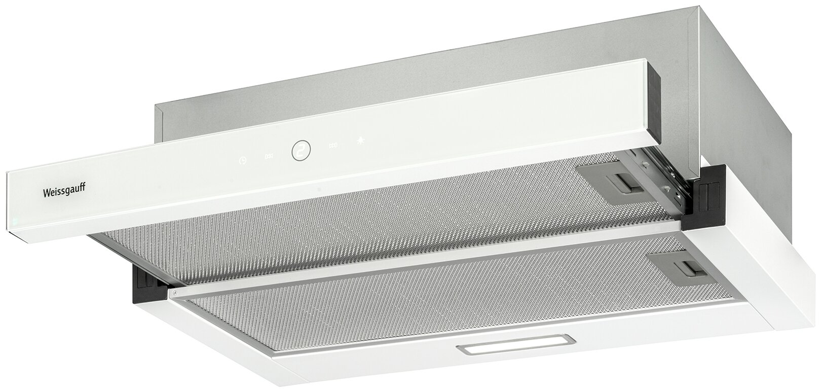 работа вытяжки как в сложенном, так и в раскрытом состоянии; для помещений площадью до 27 м2; время отключения 9 минут; 2 алюминиевых жировых фильтра; возможность установки угольного фильтра Universal (в комплект не входит); количество ламп освещения: 1; мощность каждой лампы: 2 Вт