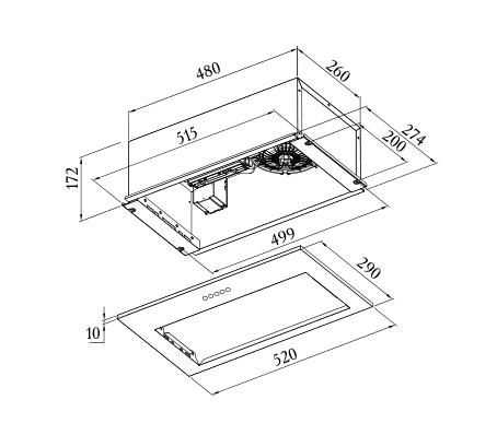 Габариты ниши (ВхШхГ) 172x480x260 мм
