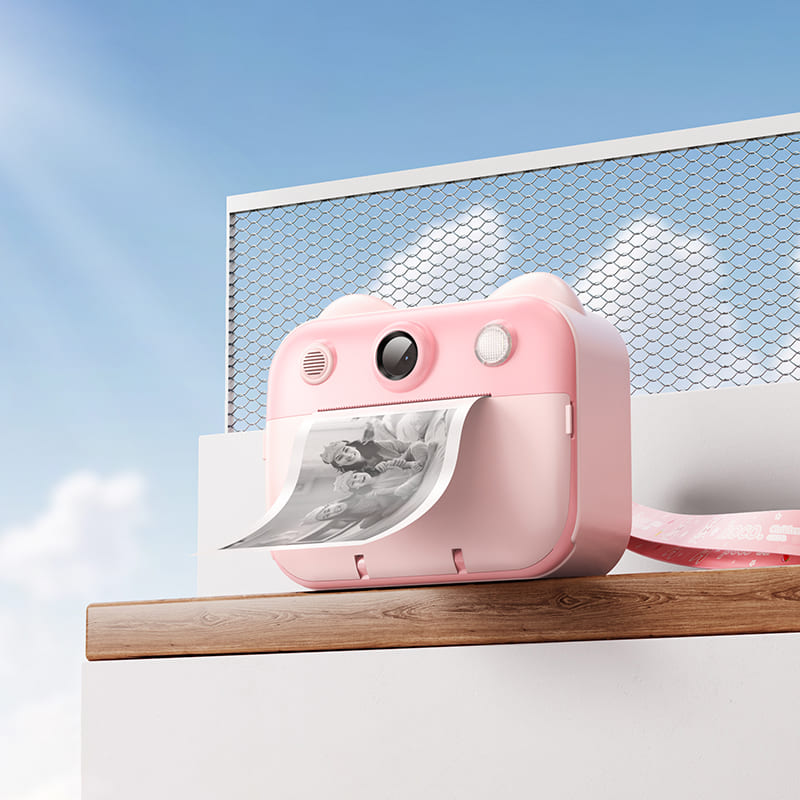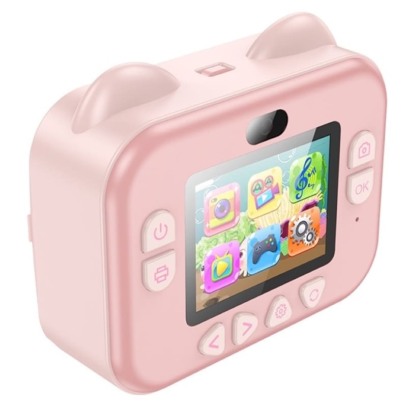Фотоаппарат, карта памяти 2 ГБ, шнурок, наклейки с героями мультфильмов, бумага для печати (3 шт), цветные ручки (6 шт), кабель для зарядки