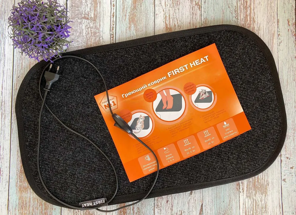-Греющий коврик Теплый пол №1 First Heat 60x35 см обеспечивает равномерный и быстрый прогрев.