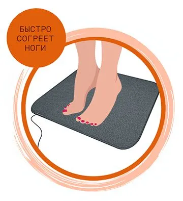 Благодаря тому, что в основе коврика инфракрасная нагревательная пленка, прогрев происходит быстро, равномерно и с абсолютно незначительным расходом электроэнергии. Терморегулирующая аппаратура не требуется, конструктивные особенности коврика не позволят ему нагреться свыше 40 градусов.