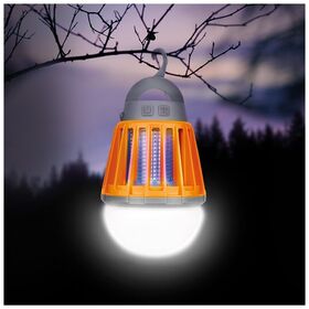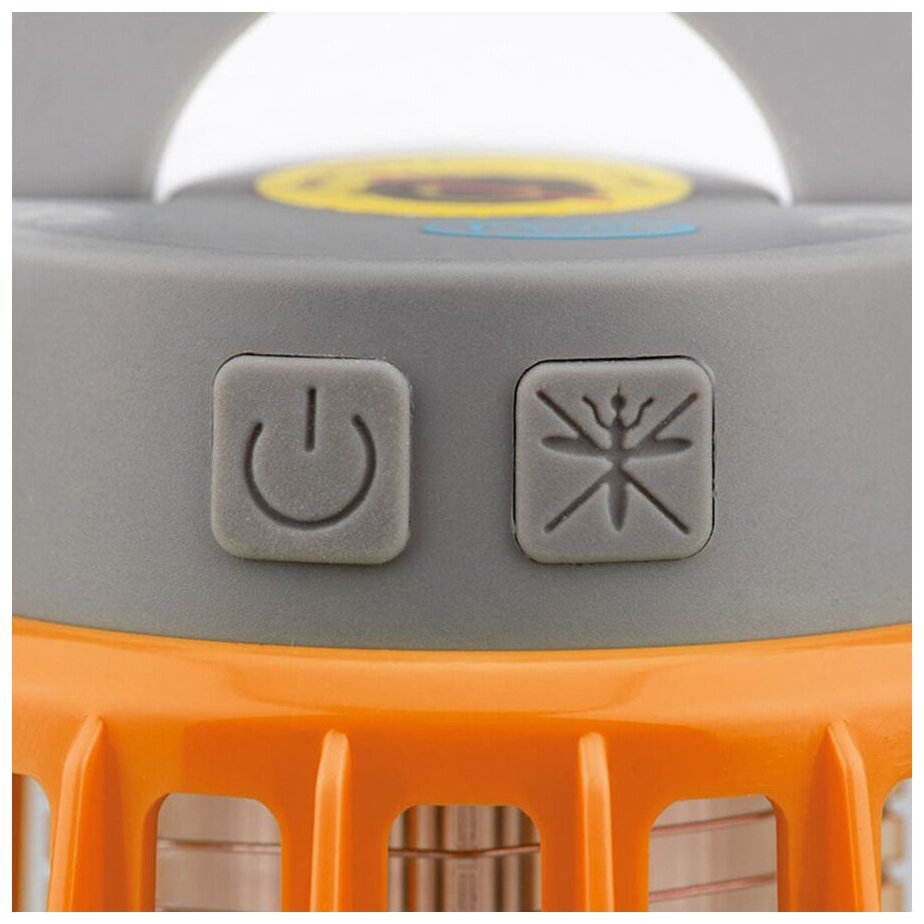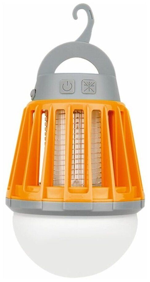 Антимоскитный кемпинговый фонарь REXANT сочетает в себе сразу 2 прибора: кемпинговый фонарь и уничтожитель насекомых. Прибор привлекает насекомых ультрафиолетовым свечением и мгновенно убивает их током. Может использоваться как внутри помещений, так и снаружи, например, для освещения палатки, беседки или просто как фонарь, благодаря влагозащищенному корпусу.