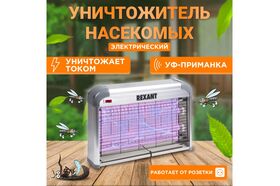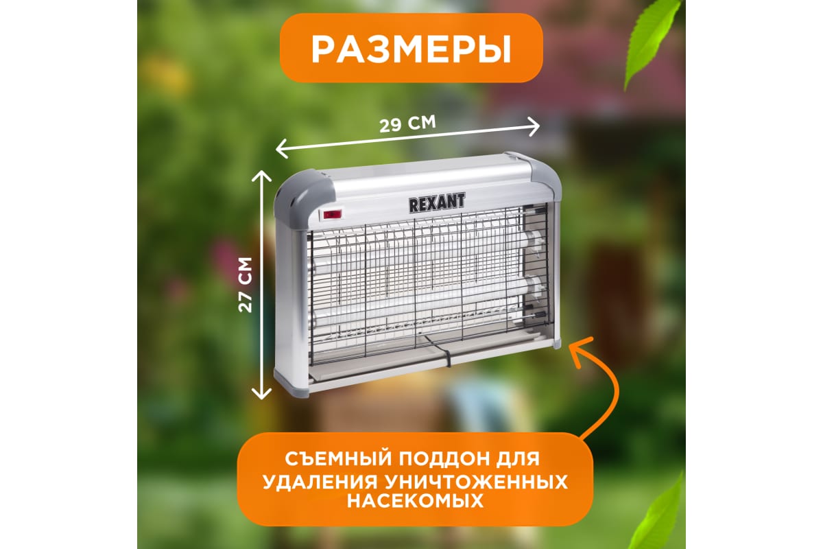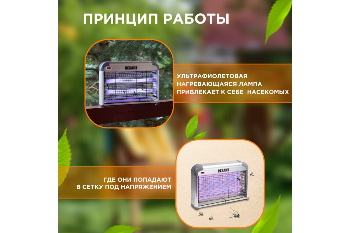 Антимоскитная лампа REXANT является современным экологически безопасным средством по борьбе с комарами, москитами, мошками, мотыльками и другими летающими видами насекомых. Предназначена для использования внутри помещений.