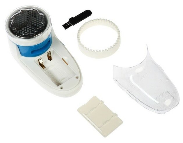 Машинка для удаления катышков с насадкой для деликатных тканей, защитной крышкой и щеточкой для очистки. Съёмный вместительный контейнер для сбора срезанных катышков.