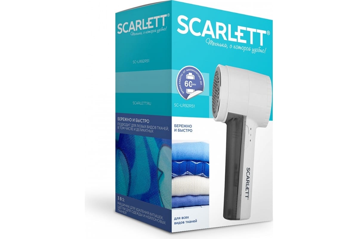 Машинка для удаления катышков Scarlett аккумуляторная SC-LR92R51 помогает вернуть одежде аккуратный вид.