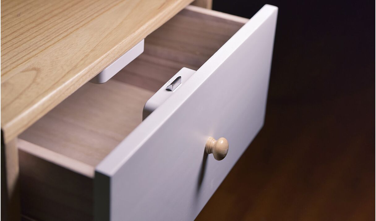 Устанавливается внутри ящика или шкафа, с помощью прочной клейкой ленты. Замок невидим постороннему взгляду, установка не вызывает необходимости сверления отверстий, не влияет на бытовую красоту, компактность и функциональность, удобен в небольшом пространстве в ящике.