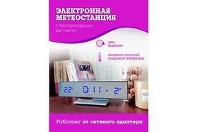 Метеостанция BVItech синий/зеркало BV-43BMx предназначена для определения температуры в помещении и на улице.