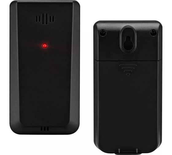 Данная модель оснащена одним датчиком, у которого есть отверстие для настенного крепления, чтобы получать показания температуры и влажности снаружи помещения. Питание датчика происходит от 2 щелочных батареек типа AAA (не входят в комплект).