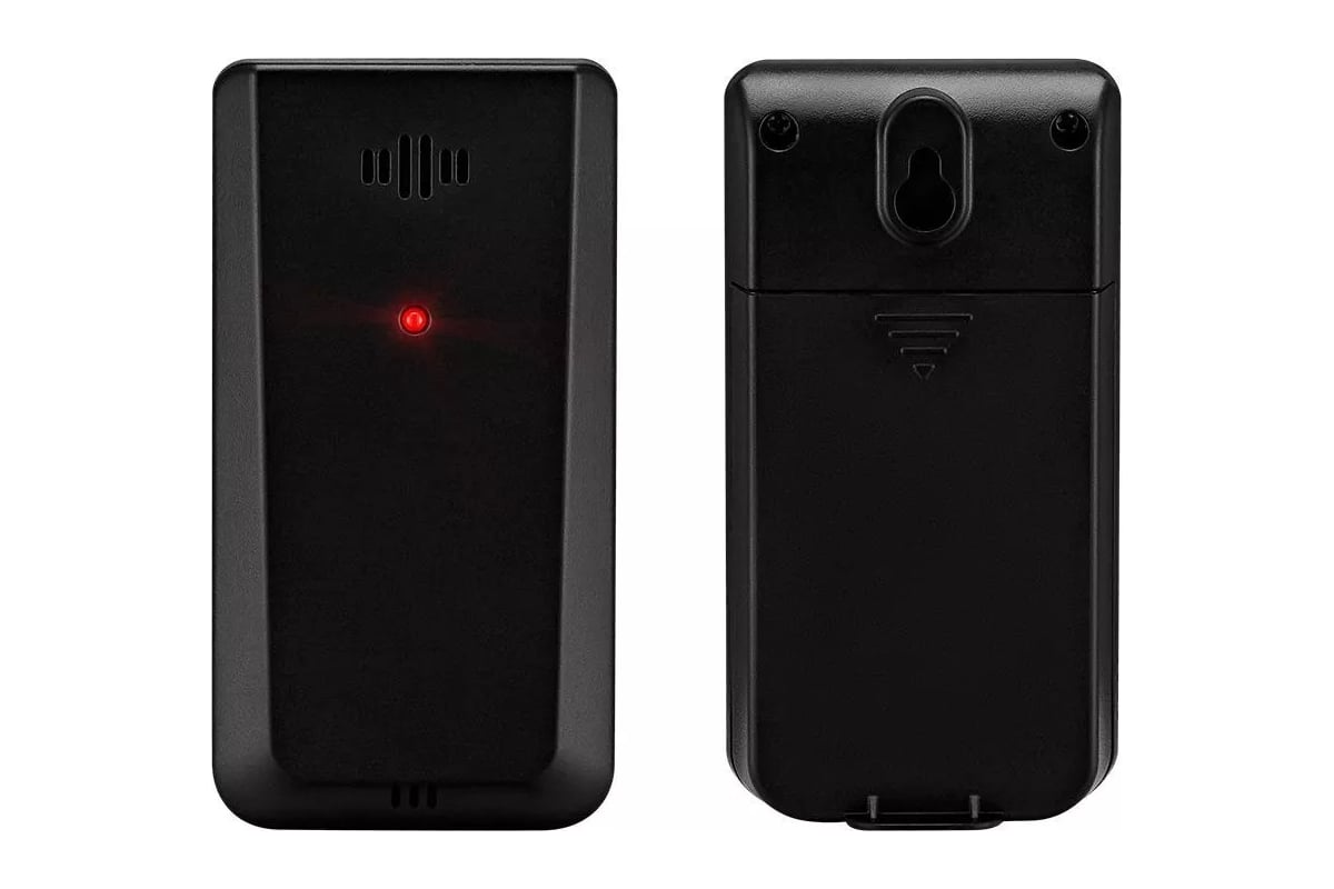 Данная модель оснащена одним датчиком, у которого есть отверстие для настенного крепления, чтобы получать показания температуры и влажности снаружи помещения. Питание датчика происходит от 2 щелочных батареек типа AAA (не входят в комплект).