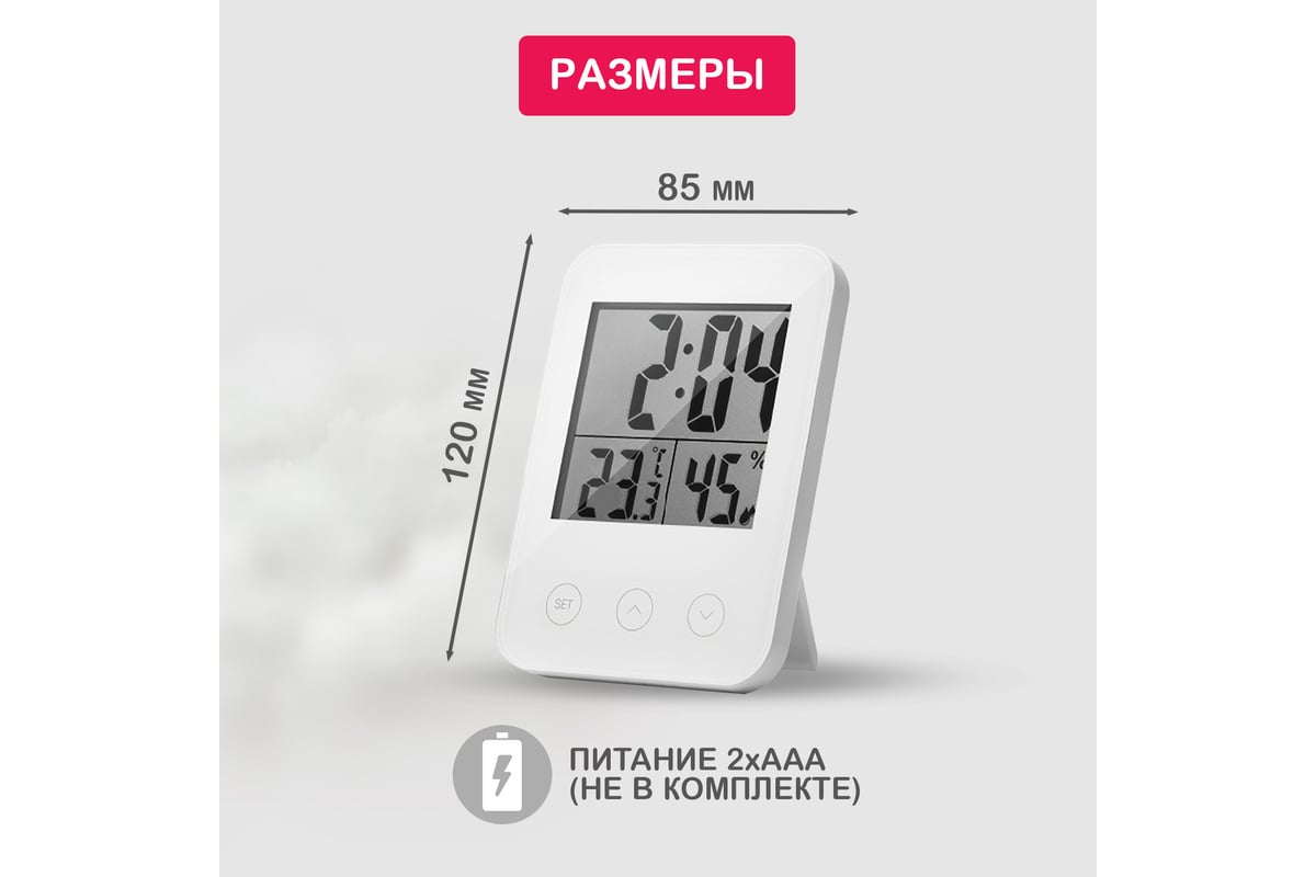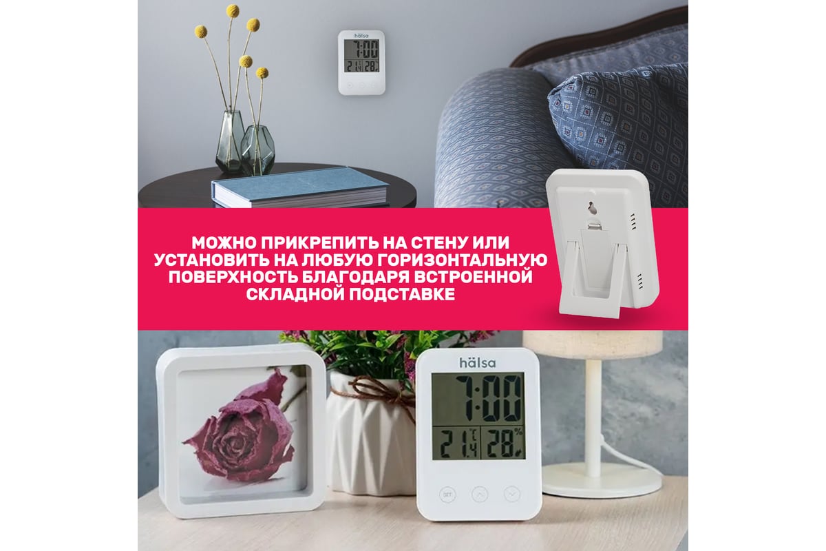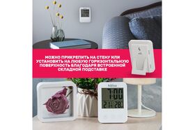 Благодаря дизайну со встроенной подставкой гигрометр можно как поставить на стол, так и закрепить на стену.