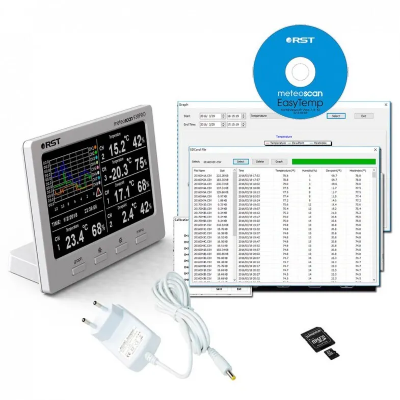 Дополнительные функции: Календарь, Определение точки росы, Регистрация макc/мин. значений температуры, Сохранение температурных значений, Часы
