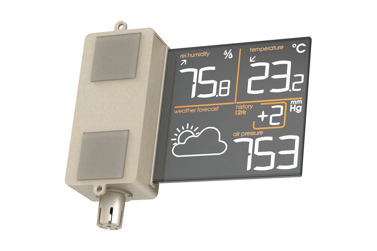 Дневное время LCD-дисплей цифровой метеостанции пропускает солнечный свет сквозь цифровые элементы, делая их видимыми инверсивно в белом цвете. В ночное время LCD-дисплей отражает комнатный свет и отображает цифровые элементы в черном цвете. Это позволяет в любое время суток четко видеть изображение дисплея метеостанции, которая крепится за окном на раму (или стекло) при помощи усиленного встроенного скотча.