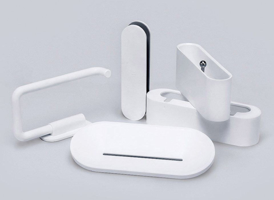 НАБОР ДЛЯ ВАННОЙ XIAOMI LIFE BATHROOM TOOLS Отличный набор стильных и продуманных аксессуаров для ванной комнаты. В комплект поставки входит держатель зубных щеток, мыльница, держатель рулона туалетной бумаги, бокс для мелочей, держатель для смартфона. Все предметы выполнены из белого пластика, не желтеющего и не меняющего цвет со временем. Крепление предполагается на качественный влагостойкий двусторонний скотч. Держатель щеток Вмещает 3 щетки, удерживая их за верхнюю часть. Щетина закрыта от брызг и грязи. Удобно вешать на стену душевой кабины или рядом с раковиной. Мыльница Элегантная мыльница лаконичной фирмы с прорезью для стекания воды и удобным внутренним вкладышем, который можно помять, не снимая мыльницу. Бокс для мелочей Основное назначение – служить временным вместилищем для драгоценностей и бижутерии. Интересно продумана конструкция. Внутри имеется второе дно, которое можно поднять за центральный держатель.