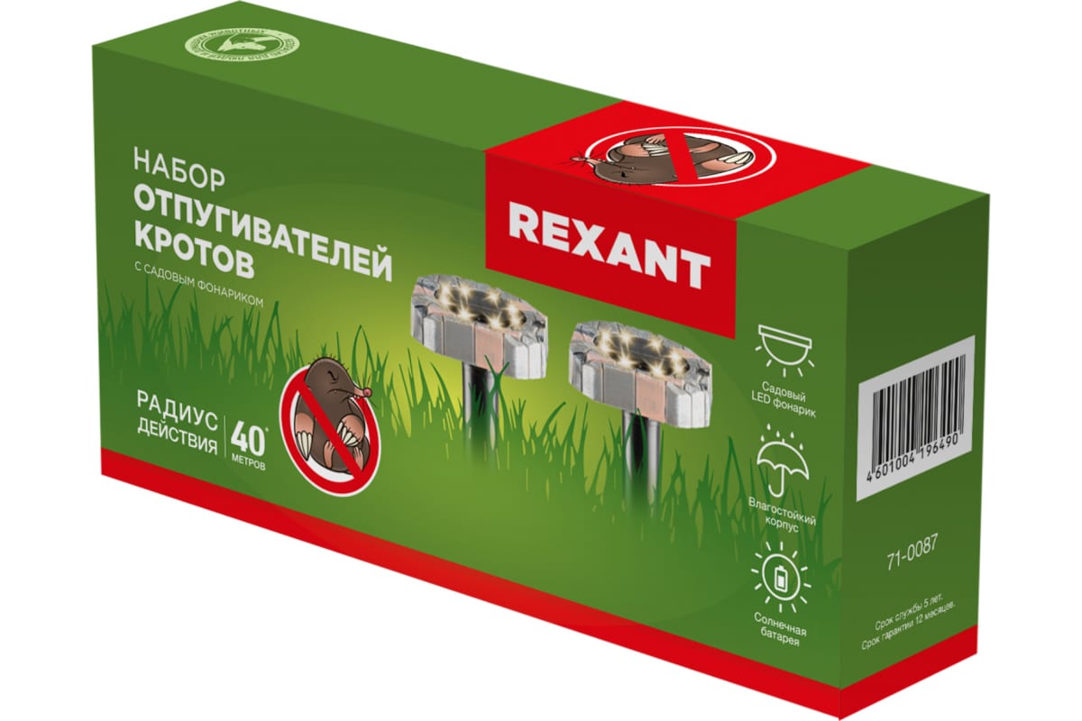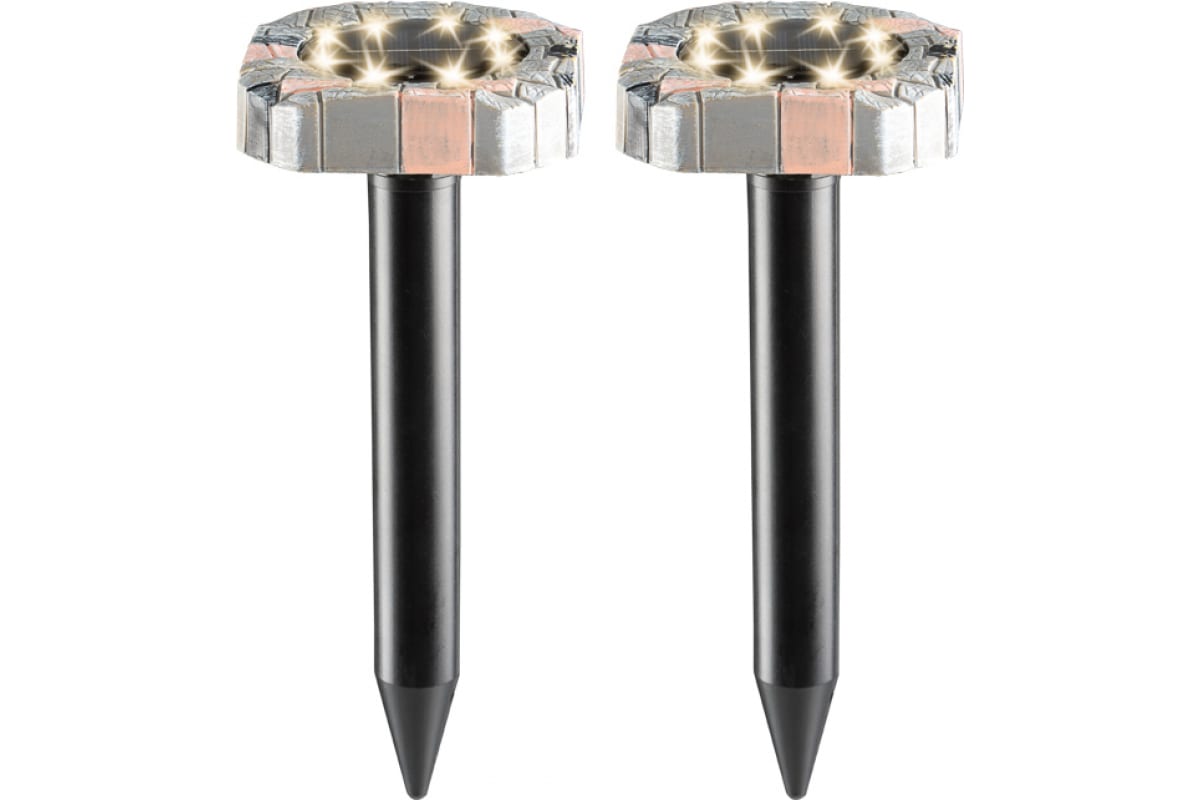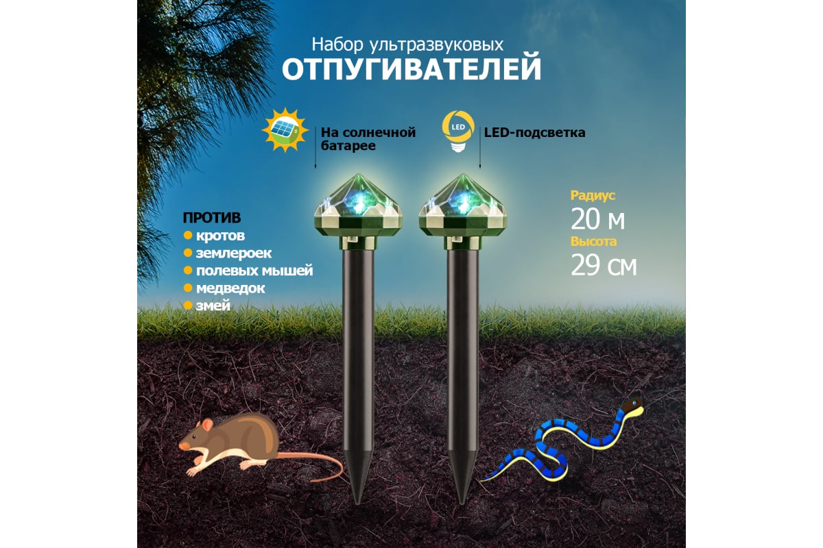 Набор отпугивателей кротов с садовым фонариком REXANT R20 2 шт. Камень 71-0087 предназначен для борьбы с земляными вредителями, такими как: кроты, землеройки, полевые мыши, медведки, змеи.