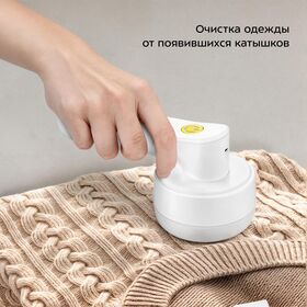Очиститель катышков работает от аккумулятора, поэтому его можно брать с собой в путешествия или на работу. Прибор легкий, эргономичная ручка удобно лежит в руке. Заряжается устройство быстро.