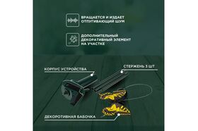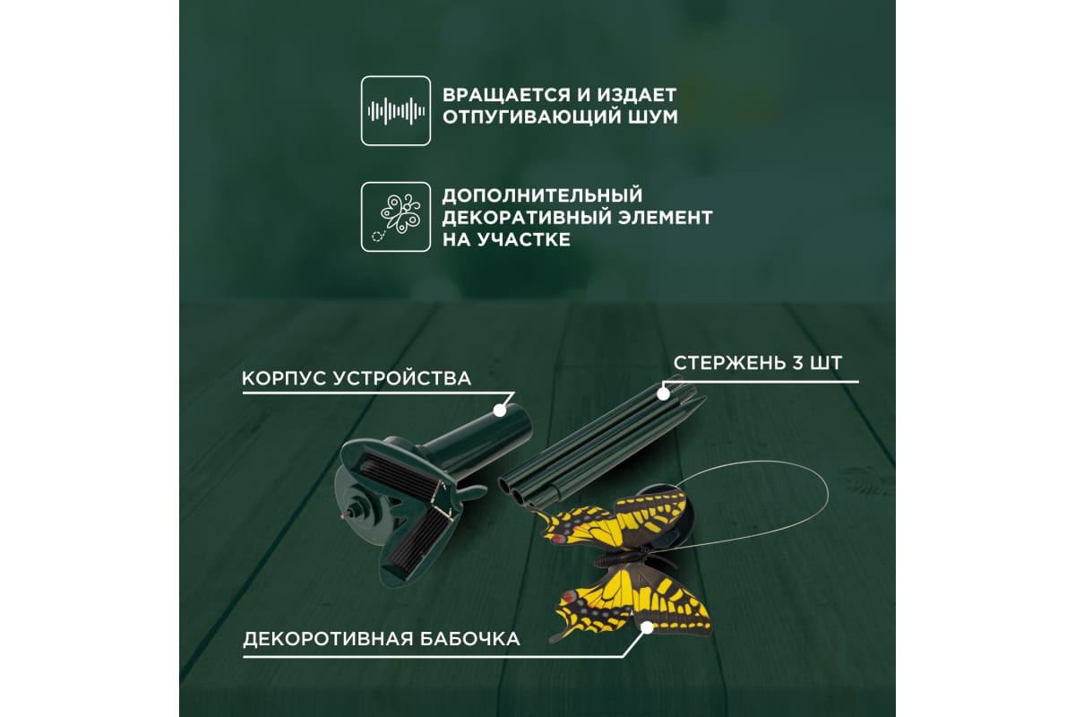 Принцип действия заключается в том, что декоративная бабочка крутится на 360 градусов и ее движение отпугивает вредителей.