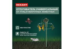 Отпугиватель – это эффективное решение для борьбы с птицами и мелким животными, такими зайцы, белки, мыши. Работает как от солнечной панели, так и от батарейки типа ААА.