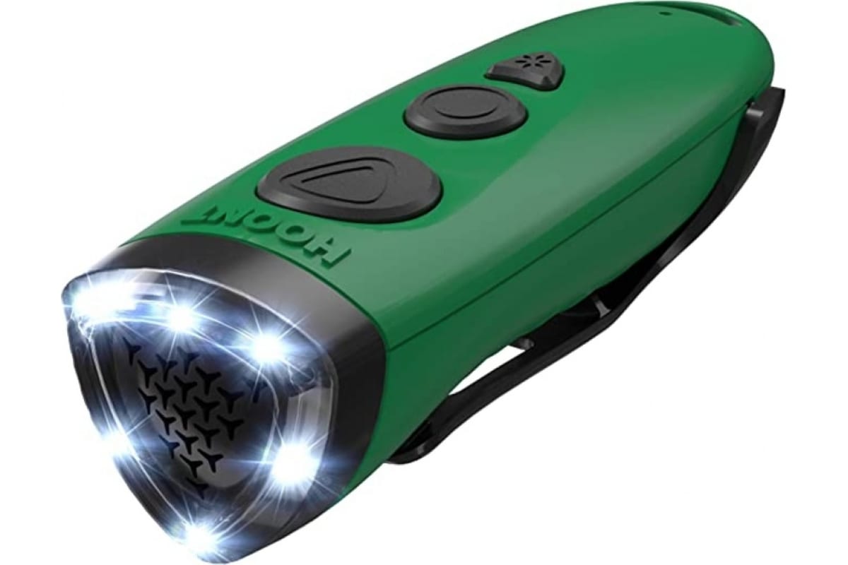 -Режим максимального отпугивания (большая круглая кнопка) - нажмите и удерживайте большую круглую кнопку, чтобы одновременно издавать сирену, стробоскоп и ультразвук