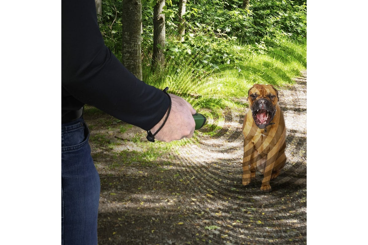 Ультразвуковой отпугиватель собак HOONT H973 предназначен для отпугивания и тренировки собак. Издает ультразвуковой сигнал мощностью 115 дБ, который не слышен человеку, но вызывает у собаки чувство дискомфорта. Пригодится велосипедистам, бегунам, заводчикам, работникам промзон. Дальность действия - 15 метров.