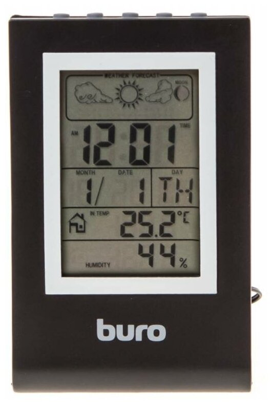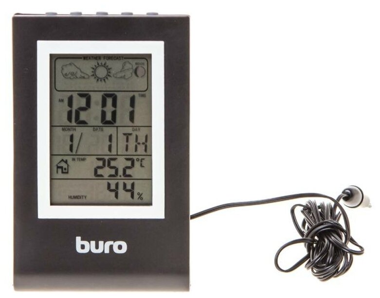 лунный календарь; сохранение температурных значений; длина провода: 1.8 м; отображение информации: цифры и символы; минимальный показатель температуры: -50 °C; максимальный показатель температуры: 70 °C