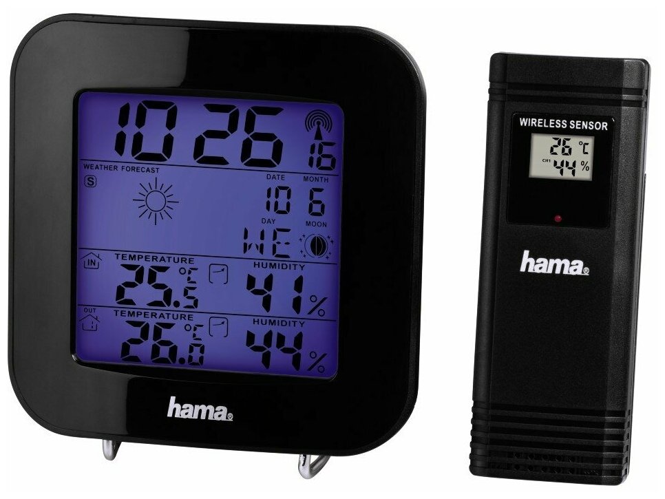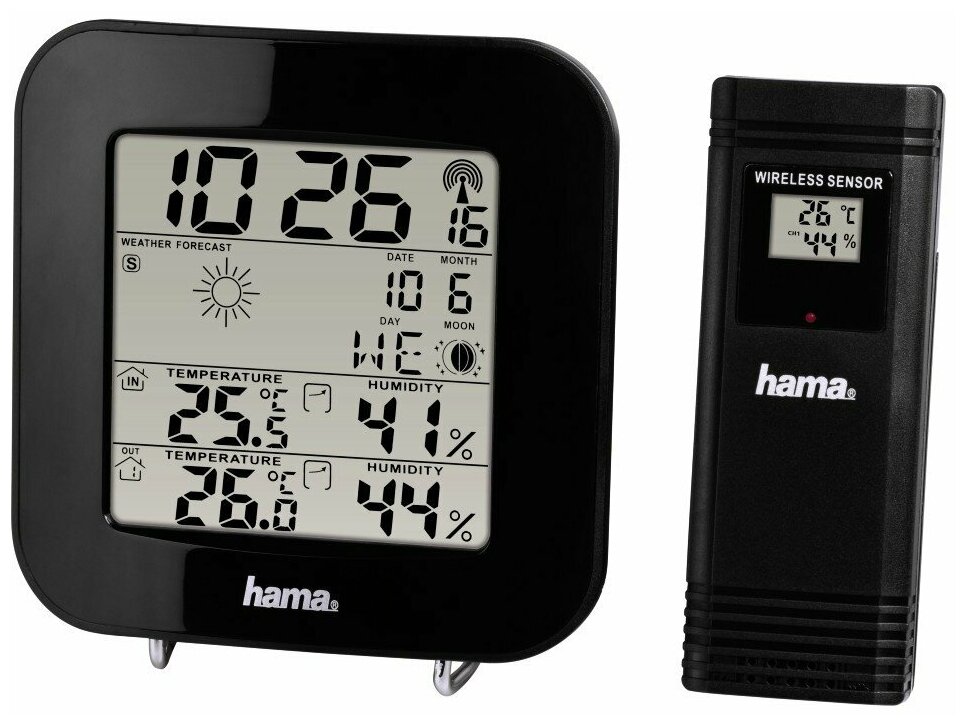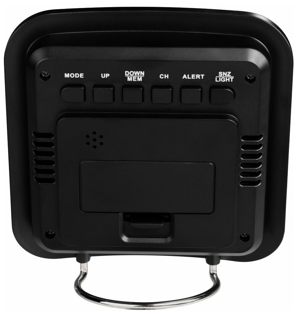 батарейки в комплекте; настройка единиц измерения; лунный календарь; сохранение температурных значений; радиус приема сигнала датчика: 30 м; количество датчиков в комплекте: 1; максимальное число датчиков: 3; цветовая подсветка; отображение информации: цифры и символы; отображение уровня комфорта; частота радиоканала: 433,92 МГц; индикация уровня заряда; минимальный интервал передачи сигнала: 30 с; подсветка дисплея; минимальный показатель температуры: -40 °C; максимальный показатель температуры: 70 °C