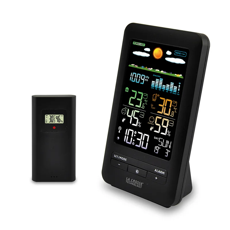 Домашняя метеостанция LaCrosse WS6205 предложит вам самую актуальную информацию о погоде, которая может быть вам полезной: показания температуры в комнате и на улице, уровень влажности в доме и на улице, прогноз погоды за завтра, а также атмосферное давление. Особым преимуществом данной модели является наличие функции предупреждения о заморозках.